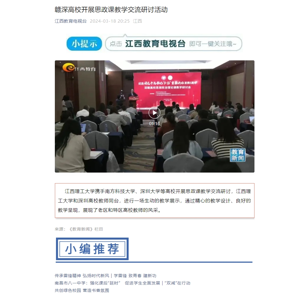 《江西教育电视台》:赣深高校开展思政课教学交流研讨活动