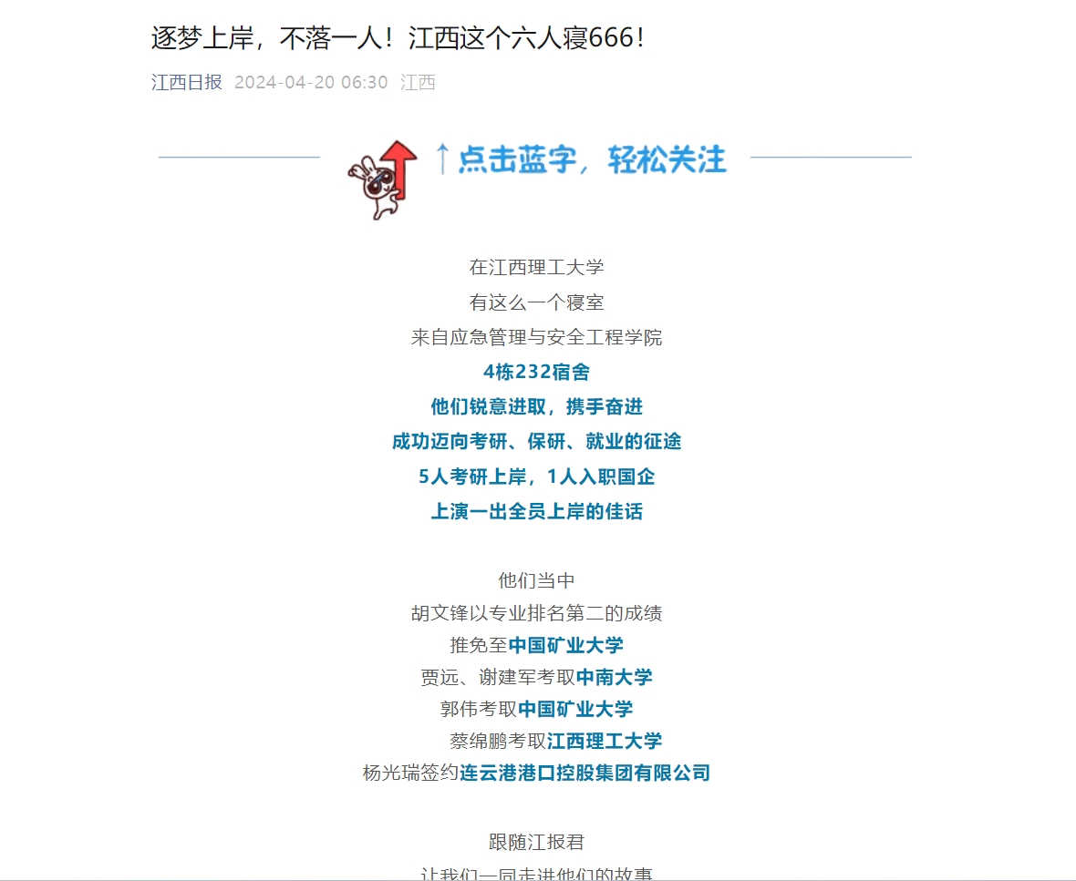 《江西日报微信公众号》:逐梦上岸,不落一人!江西这个六人寝666!