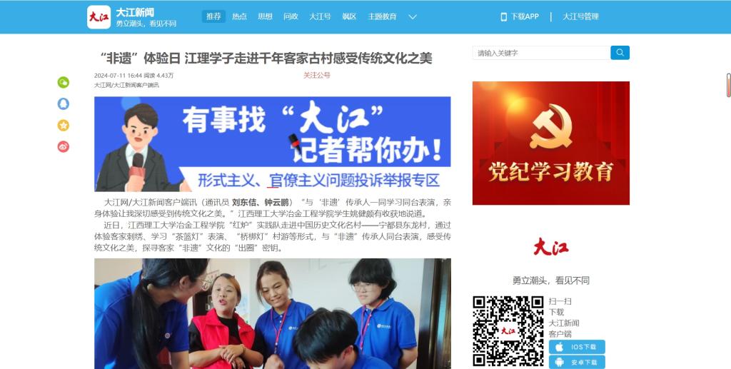 近日,安博站官网登录入口,_安博(中国)冶金工程学院“红炉”实践队走进中国历史文化名村——宁都县东龙村,通过体验客家刺绣、学习“茶篮灯”表演、“桥梆灯”村游等形式,与“非遗”传承人同台表演,感受传统文化之美,探寻客家“非遗”文化的“出圈”密钥。