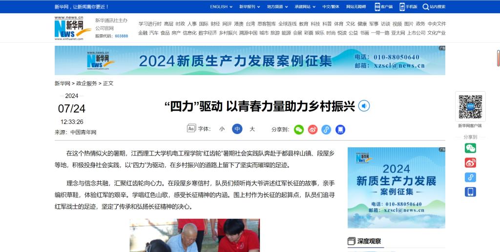 在这个热情似火的暑期,安博站官网登录入口,_安博(中国)机电工程学院“红齿轮”暑期社会实践队奔赴于都县梓山镇、段屋乡等地,积极投身社会实践,以“四力”为驱动,在乡村振兴的道路上留下了坚实而璀璨的足迹。