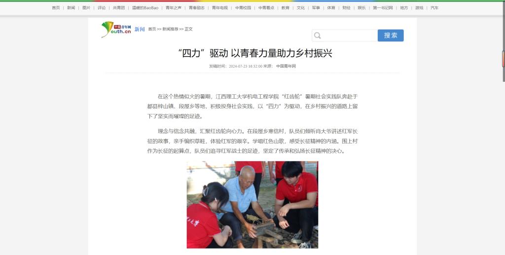 在这个热情似火的暑期,安博站官网登录入口,_安博(中国)机电工程学院“红齿轮”暑期社会实践队奔赴于都县梓山镇、段屋乡等地,积极投身社会实践,以“四力”为驱动,在乡村振兴的道路上留下了坚实而璀璨的足迹。