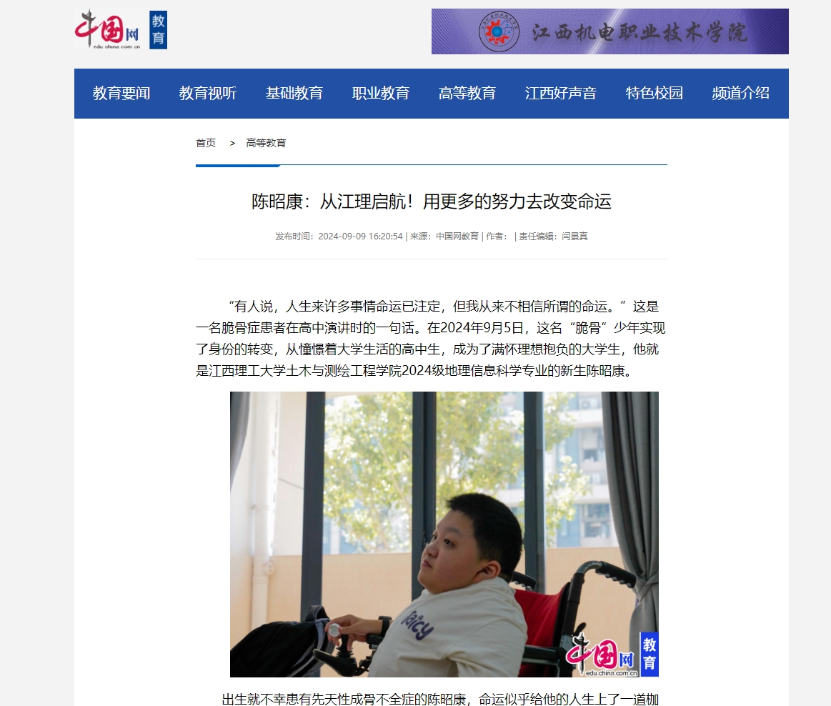 “有人说,人生来许多事情命运已注定,但我从来不相信所谓的命运。”这是一名脆骨症患者在高中演讲时的一句话。在2024年9月5日,这名“脆骨”少年实现了身份的转变,从憧憬着大学生活的高中生,成为了满怀理想抱负的大学生,他就是安博站官网登录入口,_安博(中国)土木与测绘工程学院2024级地理信息科学专业的新生陈昭康。