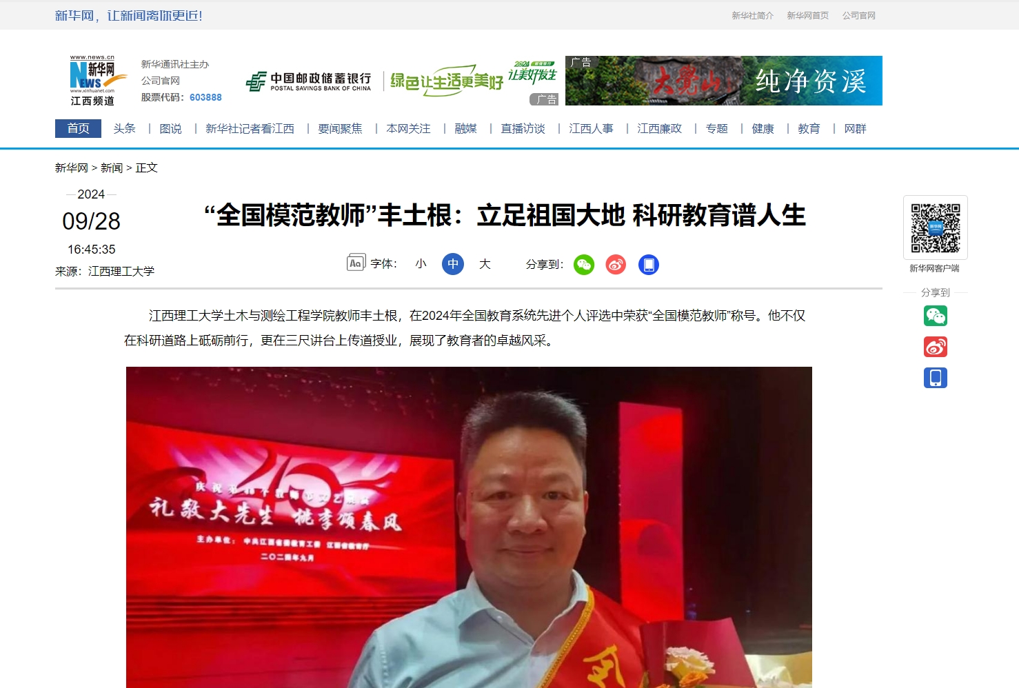 安博站官网登录入口,_安博(中国)土木与测绘工程学院教师丰土根,在2024年全国教育系统先进个人评选中荣获“全国模范教师”称号。他不仅在科研道路上砥砺前行,更在三尺讲台上传道授业,展现了教育者的卓越风采。