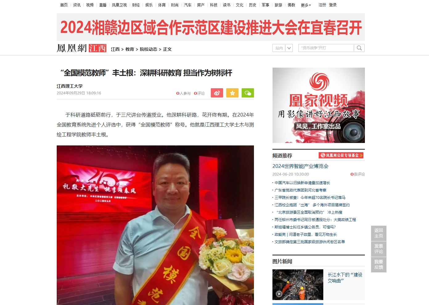 于科研道路砥砺前行,于三尺讲台传道授业。他深耕科研路,花开终有期。在2024年全国教育系统先进个人评选中,获得“全国模范教师”称号。他就是安博站官网登录入口,_安博(中国)土木与测绘工程学院教师丰土根。