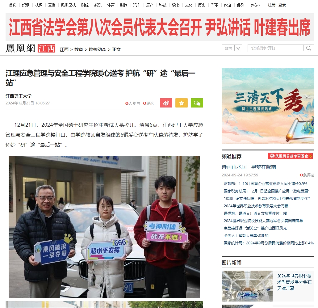 此次送考,应急管理与安全工程学院领导牵头组建爱心车队,学院教师们积极响应,当好同学们研考“最后一站”的“护航员”。