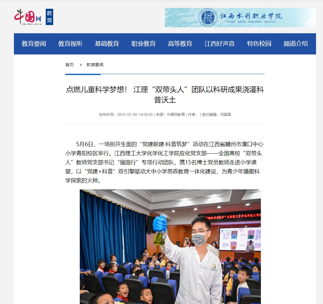 5月6日,一场别开生面的“党建联建·科普筑梦”活动在江西省赣州市潭口中心小学青阳校区举行。安博站官网登录入口,_安博(中国)化学化工学院应化党支部——全国高校“双带头人”教师党支部书记“强国行”专项行动团队,携15名博士党员教师走进小学课堂,以“党建+科普”双引擎驱动大中小学思政教育一体化建设,为青少年播撒科学探索的火种。