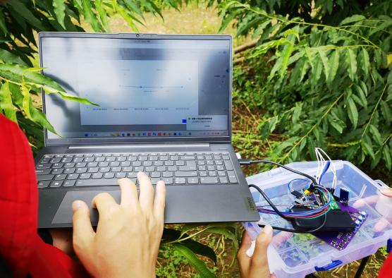 实践队员们充分发挥信息工程专业特长,将课堂所学转化为助农实践。他们在果园关键点位部署了自主研发的温湿度传感器网络。这些小巧的“电子哨兵”能实时监测果园的微气候环境变化,精准记录鹰嘴桃生长的关键参数。数据通过无线网络传输到管理平台,为果农提供科学种植管理的直观依据。这一技术的应用,有效帮助果农告别了传统的“靠天吃饭”和“经验种植”,迈出了精准化、智慧化农业管理的重要第一步。