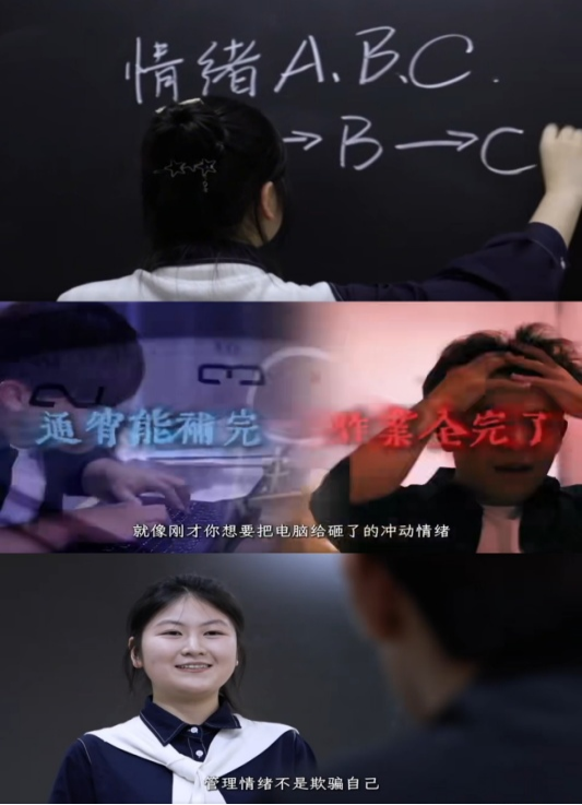 如何让小朋友理解情绪?队员们有妙招!他们把心理学上的“情绪ABC理论”变成了生动有趣的情景短剧。队员们扮演遇到不同状况的角色,夸张的表演逗得孩子们哈哈大笑。笑声中,孩子们轻松get到了关键点:“原来同一件事,换个想法看,心情真的会不一样!”这堂特别的“情绪解码课”,让孩子们在玩闹中学会了用更积极的角度看问题,悄悄种下了管理情绪的“小种子”。