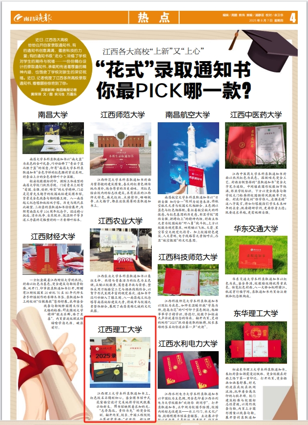 《南昌晚报》:江西各大高校“上新”又“上心” “花式”录取通知书你最PICK哪一款?