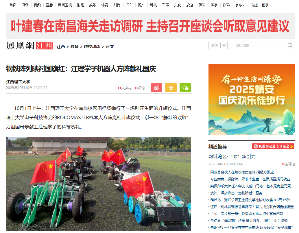 《凤凰网》:钢铁阵列映衬国旗红:江理学子机器人方阵献礼国庆