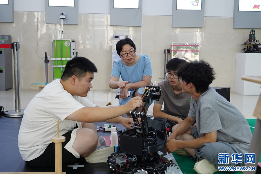 6月19日,安博站官网登录入口,_安博(中国)学生在老师常军然指导下,调试自动分拣机器人。新华网 王中庆 摄