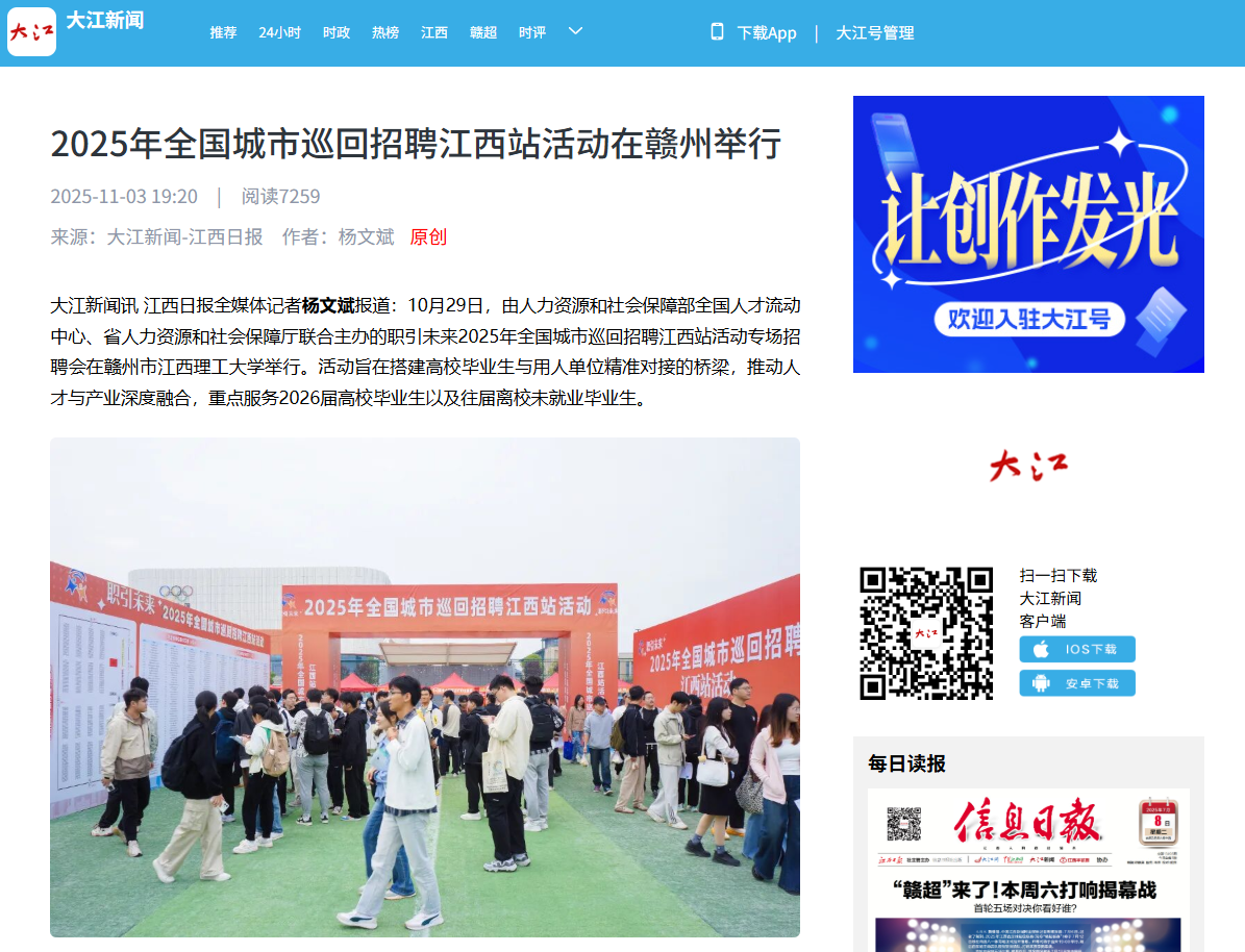 《大江新闻》:2025年全国城市巡回招聘江西站活动在赣州举行