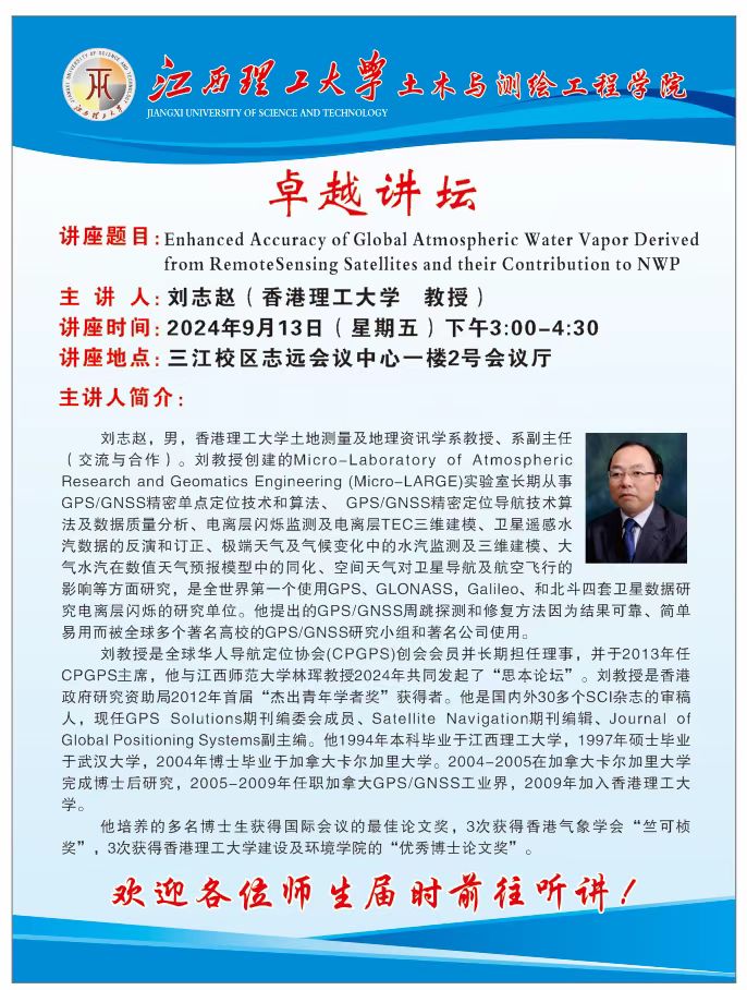 卓越讲坛:Enhanced Accuracy of Global Atmospheric Water Vapor Derived from Remote Sensing Satellites and their Contribution to NWP