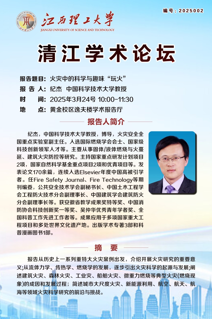 清江学术论坛:火灾中的科学与趣味“玩火”