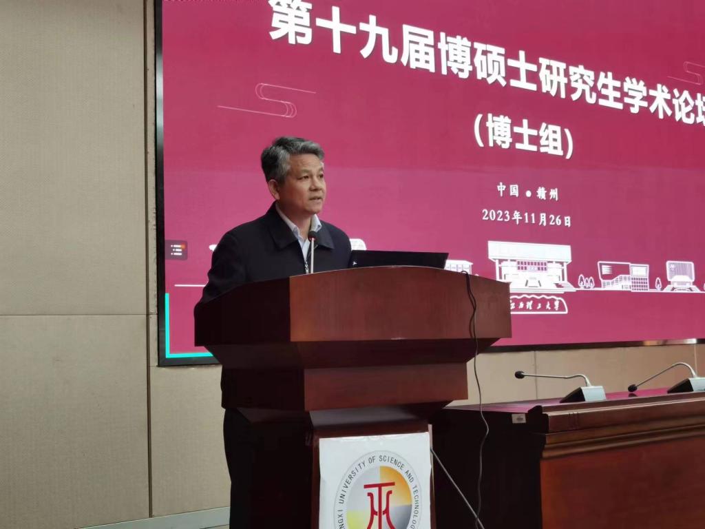 本网讯 11月26日下午,我校在黄金校区逸夫楼会议厅举行第十九届研究生(博士组)学术论坛。校党委常委、副校长董冰岩,研究生院院长赵奎,机电工程学院、土木与测绘工程学院、化学化工学院、冶金工程学院、电气工程与自动化学院、材料科学与工程学院、资源与环境工程学院等相关学院研究生秘书、辅导员以及各年级博、硕士研究生共计200余人参加了此次论坛。本次学术论坛线上线下同步举行。