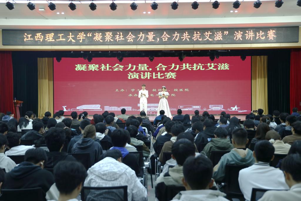 此外,稀土学院在黄金校区逸夫楼报告厅举行了以“凝聚社会力量,合力共抗艾滋”为主题的防“艾”知识讲座。讲座由医疗康养中心(校医院)肖银芳医生主讲,稀土学院全体学生参加。