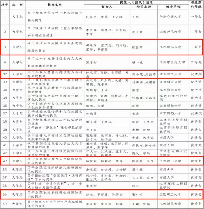 本网讯 近日,2023年江西省模拟政协提案征集活动获奖名单出炉,我校荣获大学组全省一等奖1项(全省仅3项)、优秀奖3项。
