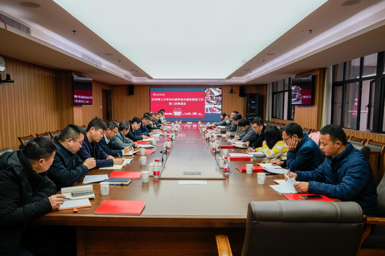 本网讯  12月13日上午,我校2024届毕业生就业创业工作第三次推进会在三江校区濂溪楼2号会议室召开。校党委常委、副校长龚姚腾出席会议,招生就业处、研究生工作部负责人,各学院党委副书记,南昌校区、应用科学学院就业工作相关负责人参加会议。会议由龚姚腾主持。