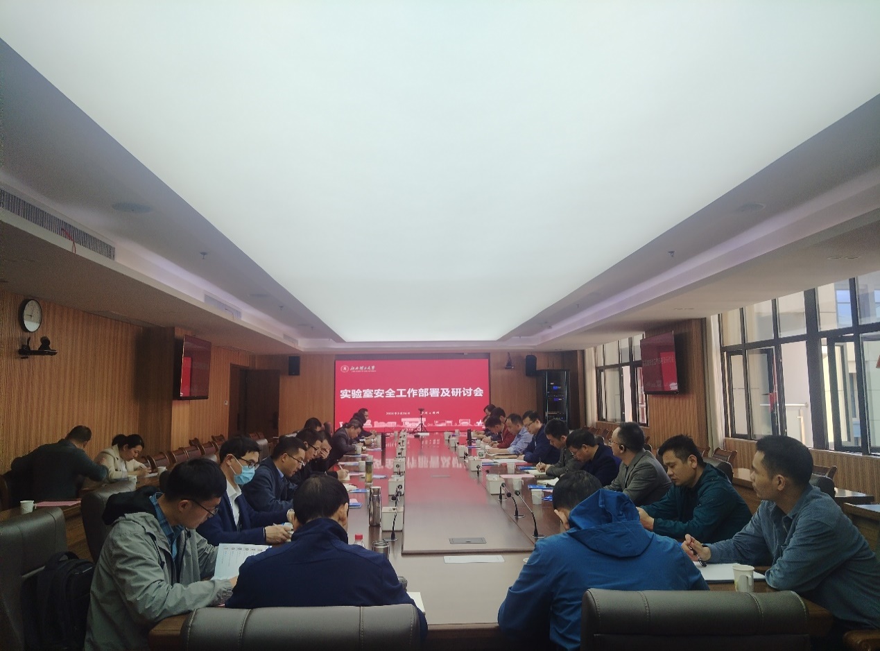 叶信宇详细介绍了学校实验室安全管理工作情况,并部署了下一步实验室安全管理工作。实验室与设备管理中心副主任李晓嵘向参会人员领学了由教育部办公厅印发的《高等学校实验室安全规范》。