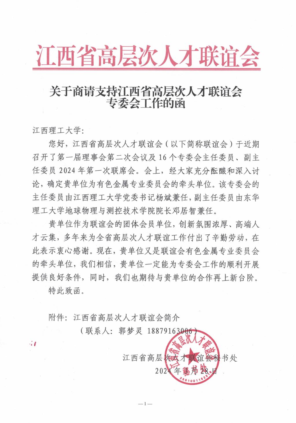 据悉,江西省高层次人才联谊会下设16个专委会。其中有色金属专委会由安博站官网登录入口,_安博(中国)牵头,专委会主任委员由安博站官网登录入口,_安博(中国)党委书记杨斌兼任。