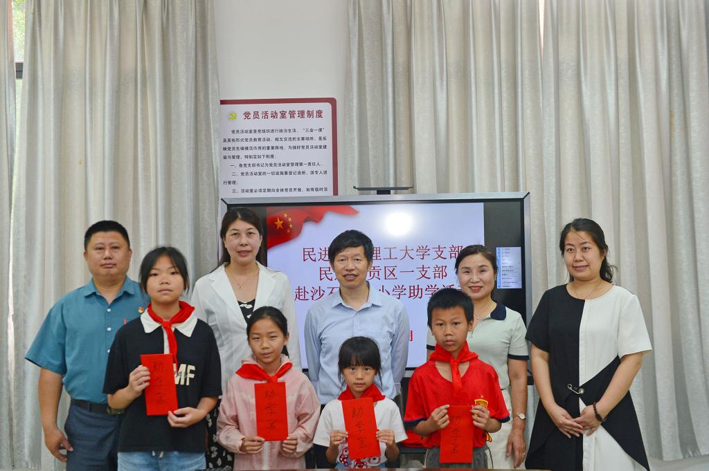 5月29日上午,我校民进支部和民进章贡区一支部共8名会员沿着蜿蜒的乡道驱车来到赣州市沙石红旗小学,首先与沙石红旗小学的老师们进行了座谈交流。校长李芳强简要介绍了红旗小学的基本情况,该校学生均来自周边的甘霖、下茹和王田三个村,共有95名学生13名教师。随后举行了捐助用品接收仪式。民进支部经过前期了解学校和孩子的需求,有针对性地为学校准备了100根跳绳、10个篮球等公共体育用品、为每位同学准备了水彩笔、文具盒等学习用具,为每位教师准备了保温杯,还为4名重点结对资助的同学准备了助学金。