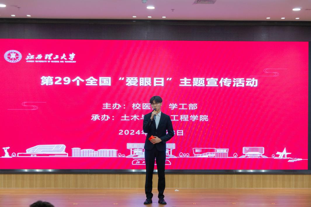 本网讯  眼睛是人类最重要的感官之一,也是心灵的窗户。为提高广大师生爱眼护眼意识,5月28日上午,由校医院、党委学生工作部主办,土木与测绘工程学院承办的第29个全国“爱眼日”宣传教育活动在三江校区图书馆一楼学术报告厅举办,近300名师生参加。