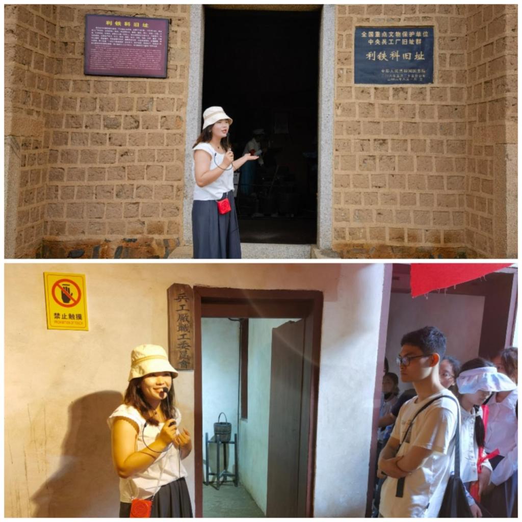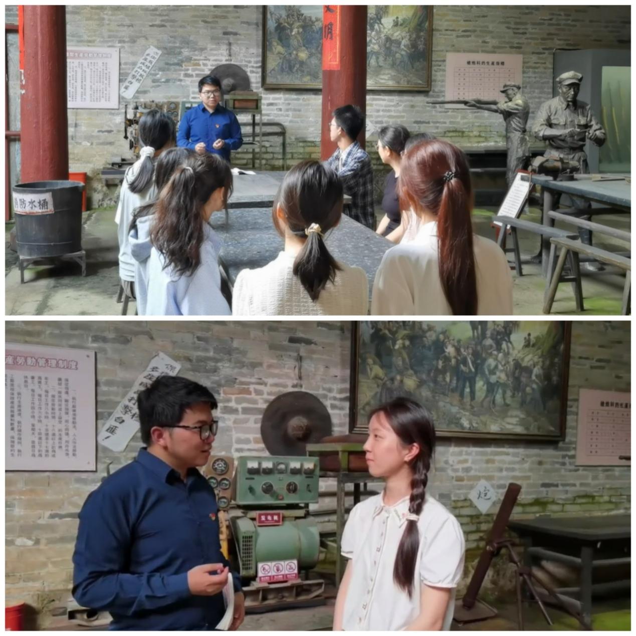 官田中央兵工厂实践基地讲解员赵青华以“兵工精神兵工梦”为主题详细介绍了官田中央兵工厂,她以一个个鲜活的红色兵工故事将总务科、枪炮科、弹药科、利铁科旧址等红色兵工遗迹串联起来,为我校师生讲述了一堂“红色兵工思政课”。