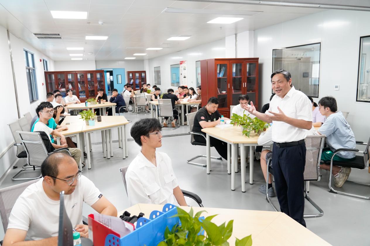 本网讯 6月22日,班级“三联系”领导、校党委副书记罗仙平带领矿加222班的同学们,深入国家稀土功能材料创新中心,开展了一场别开生面的主题班会,引领同学们探索稀土科研奥秘,享启迪思维、激发创新热情的学术盛宴。