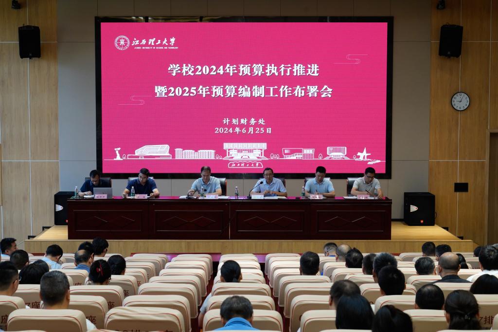 本网讯 6月25日上午,我校在三江校区启航会议中心2号会议厅召开2024年预算执行推进暨2025年预算编制工作部署会,全面总结学校2024年预算执行情况,科学谋划、积极推进2025年预算编制工作。校党委常委、副校长廖春发出席会议并讲话,学校财务规划及预算编制工作领导小组成员、各学院(部门)分管财务工作相关领导及预算编制员参加会议。会议由校计划财务处处长周俊峰主持。