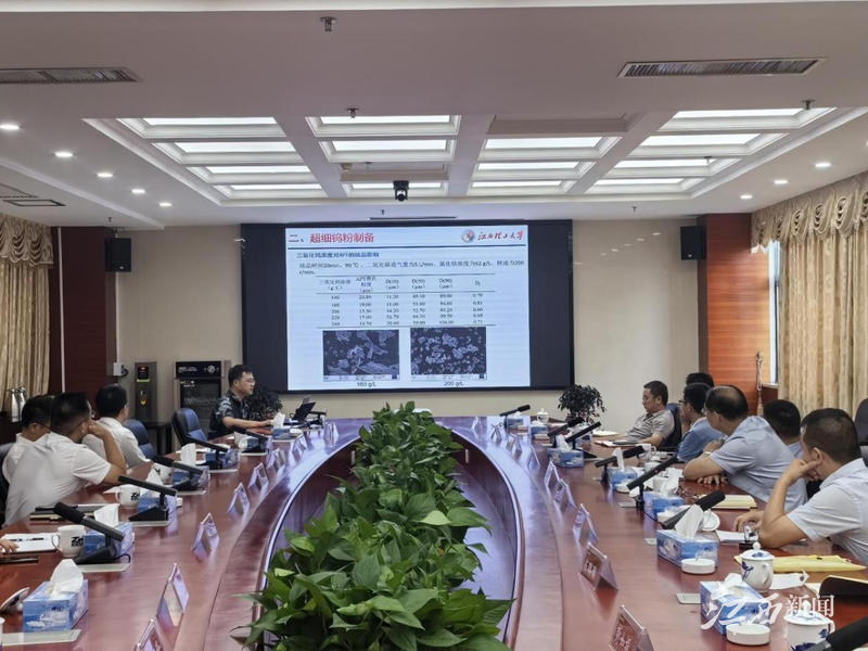 会上,三方针对钨行业相关的学术问题开展了热烈研讨。稀有金属党支部杨亮、贺山明、曹才放和刘德刚分别作了钨基粉末冶金材料的制备、废硬质合金高效利用技术、钨湿法冶金的热力学研究等相关研究报告。章源钨业机关第二党支部书记、副总经理徐国钻提出了目前企业发展面临的科技难题。三方代表针对相关科技难题进行了深入的讨论,并就强化校政企合作交流达成了共识。