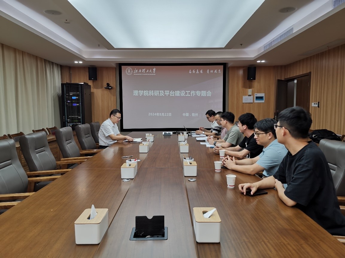 本网讯  8月22日,理学院召开科研及平台建设工作专题会,校党委常委、副校长熊志华,理学院科研平台申报材料撰写小组成员参加会议。会议由理学院院长徐中辉主持。