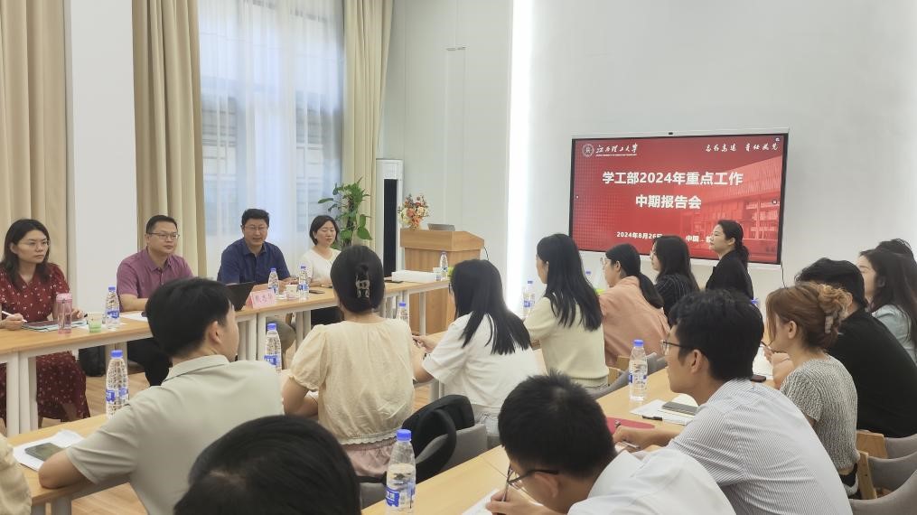本网讯  8月26日上午,党委学生工作部在三实楼一楼心理健康教育中心团辅室召开了2024年重点工作中期报告会。校党委常委、副校长熊志华出席,学工部全体人员、6名学院代表及新入职辅导员参加。会议由校党委学生工作部部长贾群燕主持。