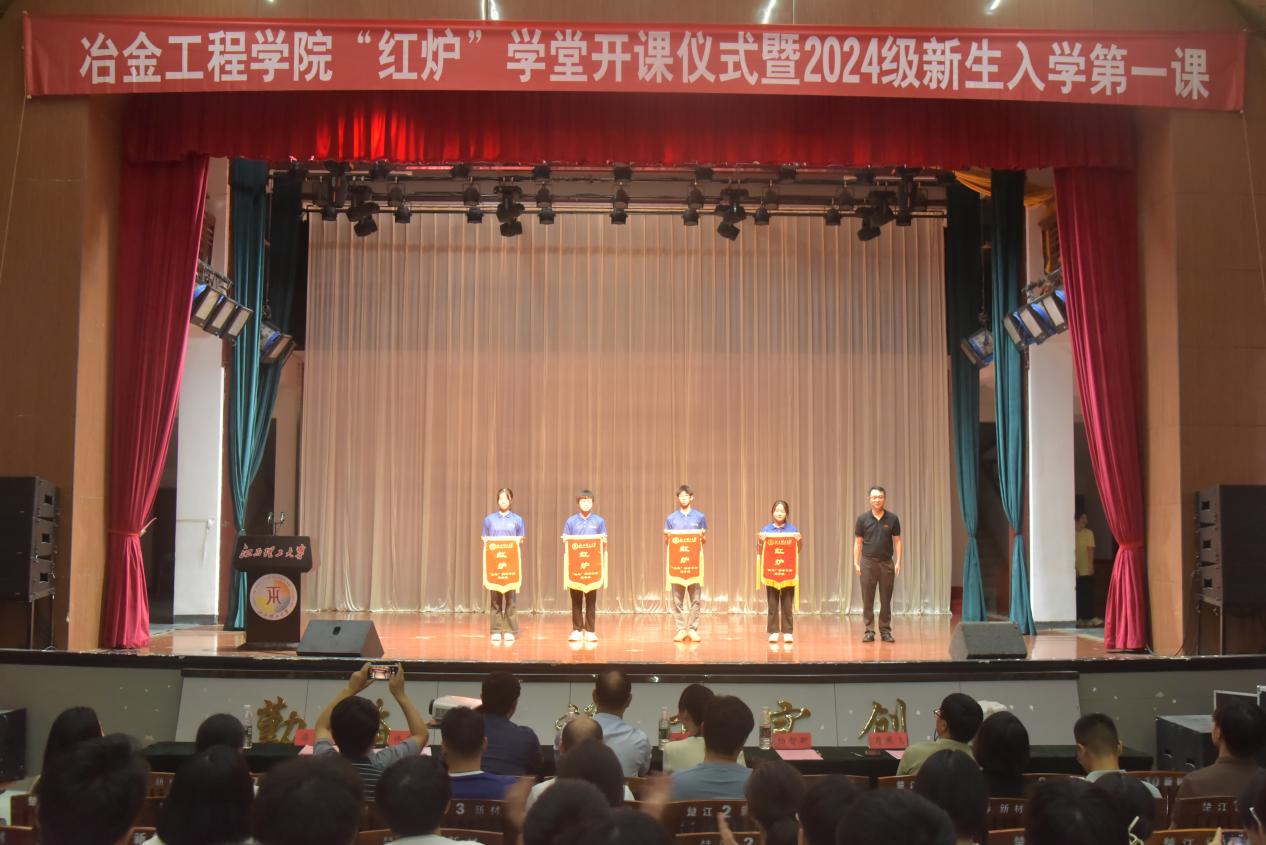 本网讯 9月8日晚,冶金工程学院举办了“红炉”学堂开课仪式暨2024级新生入学第一课。校党委常委、副校长廖春发出席,校党委学生工作部、招生就业处、校团委、冶金工程学院等相关单位领导及全体2024级本科生、硕士博士研究生共同参与活动。