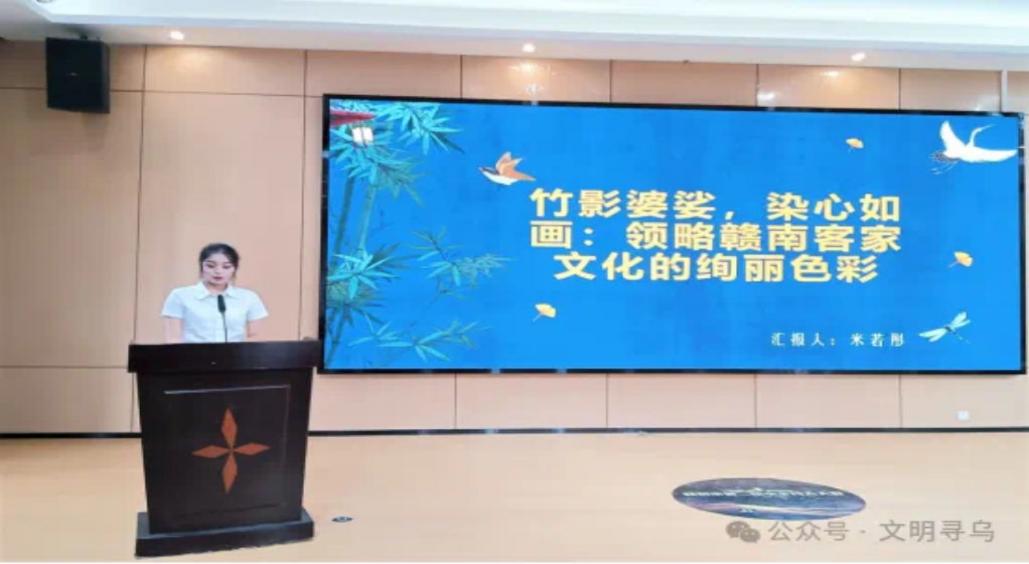 活动中,我校马克思主义学院2023级研究生米若彤进行了题为《竹影婆娑,染心如画:领略赣南客家文化的绚丽色彩》的科普知识宣讲。她以引人入胜的讲解方式,带领听众穿越时空,探寻客家文化深厚的历史渊源与丰富的人文内涵,详尽阐述了客家文化的诞生背景、演变轨迹以及独特的民俗风情,并借助一系列鲜活的案例和精美的图像资料,生动再现了客家人在迁徙与发展过程中展现出的顽强生命力和创新智慧。