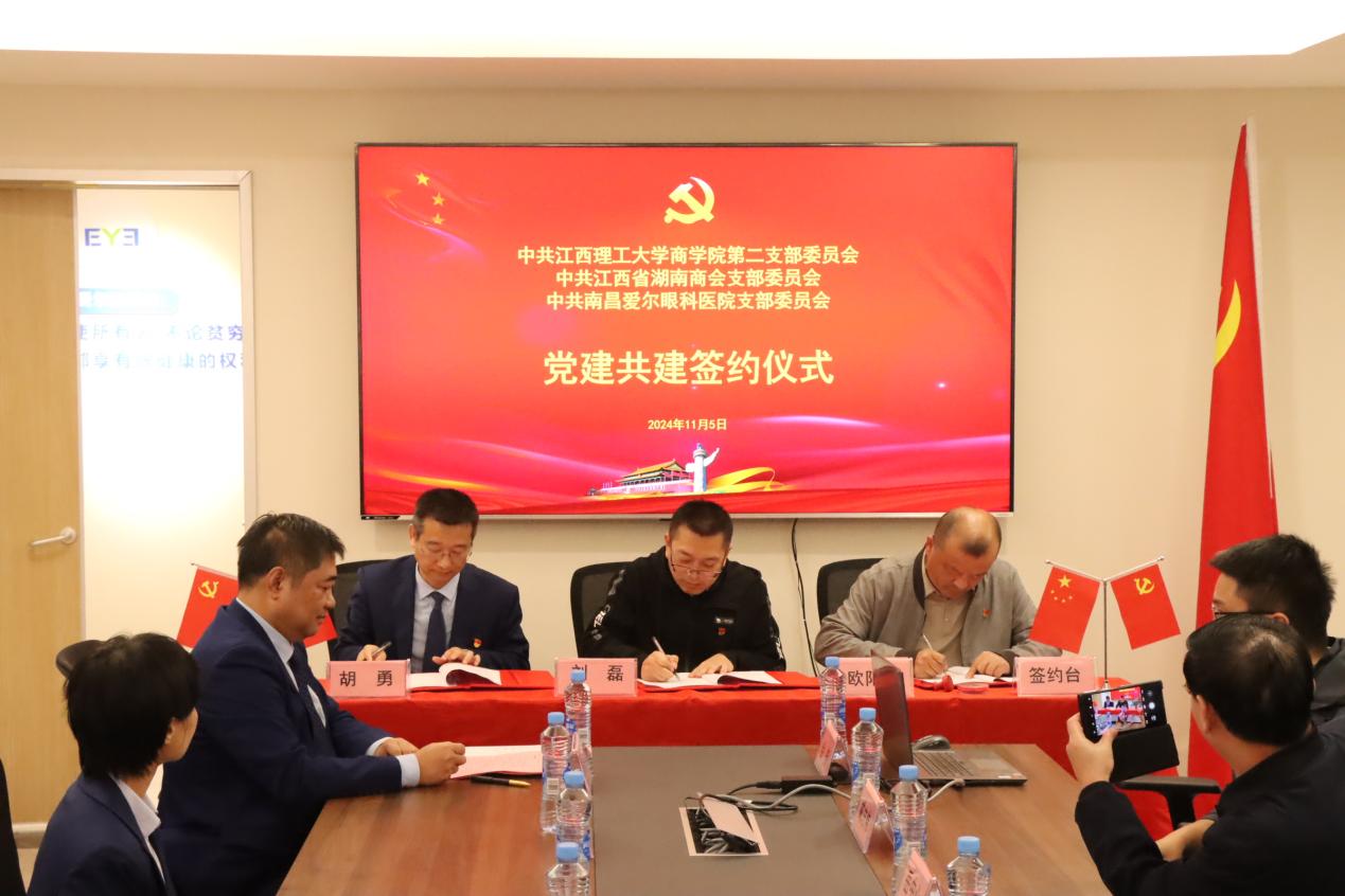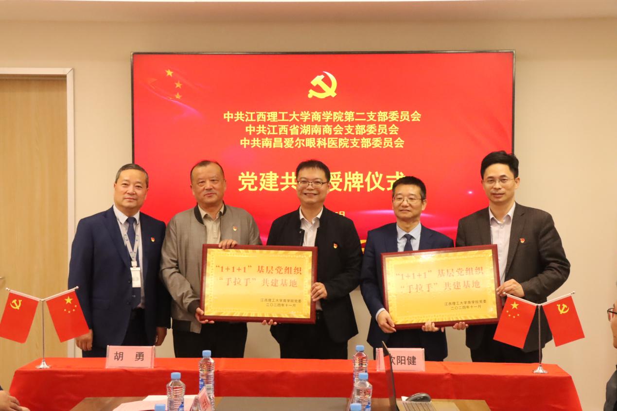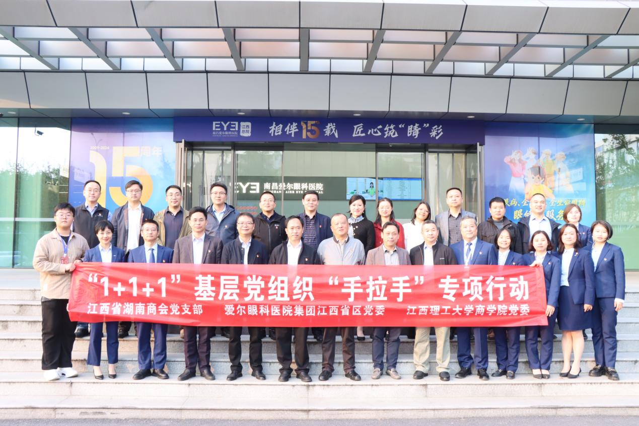 本网讯 11月5日下午,商学院党委与江西省湖南商会党支部、爱尔眼科医院集团江西省区党委在南昌爱尔眼科医院(江西总院)共同开展“1+1+1”基层党组织“手拉手”共建仪式暨主题党日活动。