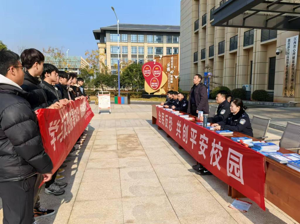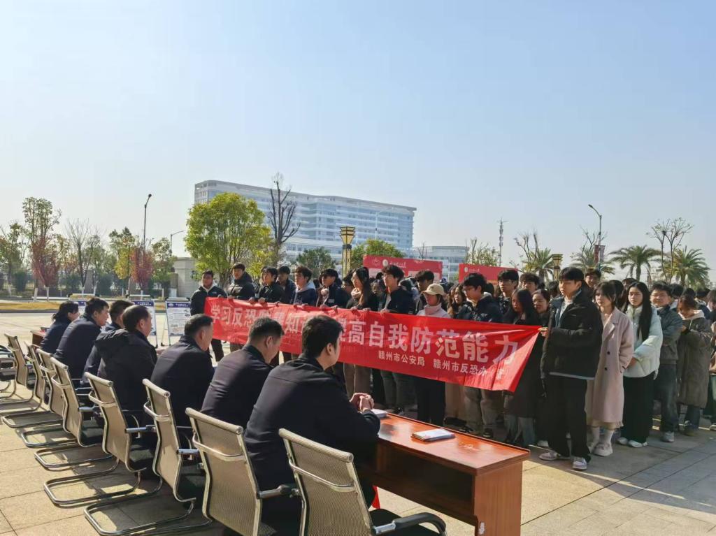 此次活动由赣州市公安局国保支队、赣州市公安局开发区分局国保大队、科技城派出所主办,我校保卫处、学工部承办。赣州市公安局国保支队大队长龚春平,赣州市公安局开发区分局国保大队大队长周逸勇,开发区公安分局科技城派出所副所长王龙,我校保卫处副处长(主持工作)钟杨俊、学工部副部长刘黎明等出席活动现场进行宣传和咨询解答。