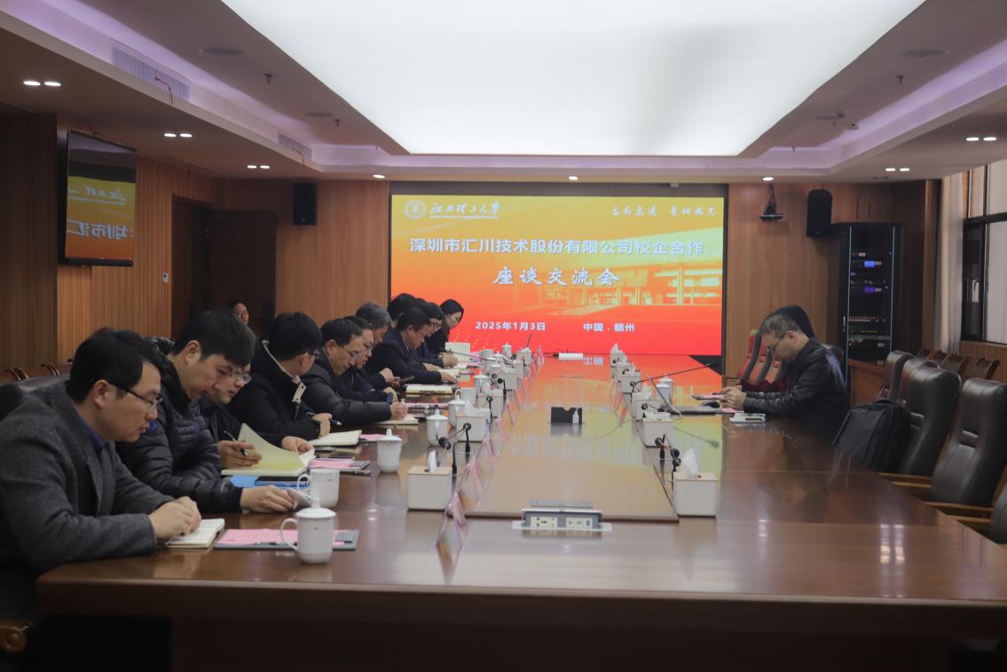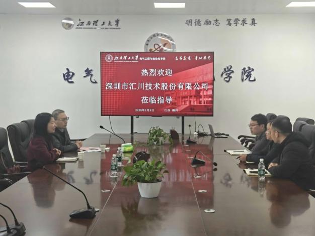 本网讯  1月3日上午,我校与深圳市汇川技术股份有限公司在三江校区召开座谈交流会。校党委常委、副校长龚姚腾,汇川技术股份有限公司校企合作部总经理茹春艳,数字化事业部总监陈潇男出席会议,我校招生就业处、教务处及相关学院负责人参加。