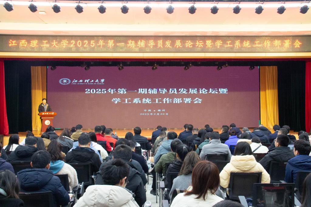 本网讯  2月20日,我校2025年第一期辅导员发展论坛暨学工系统工作部署会在三江校区三实楼一楼多功能厅召开,校党委常委、副校长熊志华出席会议并讲话。校党委学生工作部、校团委、国际教育学院相关人员,全体专兼职辅导员参加会议。南昌校区、先进铜产业学院、电子信息产业学院视频参会。