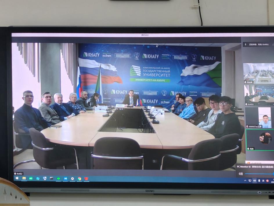 本网讯  3月20日,我校与阿穆尔共青城国立大学通过线上会议形式,联合举办中俄电子科学与技术专业本科合作办学教育项目宣讲会。会议聚焦深化校际合作、优化硕士课程衔接机制,并动员优秀本科生赴俄深造。我校电气工程及其自动化学院院长刘细平、阿穆尔共青城国立大学校长德米特里耶夫·埃杜阿尔特·阿那托里耶维奇及双方院校领导、教师代表共同参会。