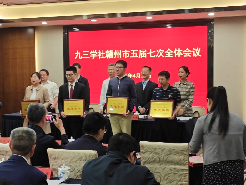 本网讯  4月27日,九三学社赣州市五届七次全体会议召开,市政协副主席、九三学社市委会主委韩高峰出席会议并作工作报告,市委统战部一级调研员尹林春应邀出席并讲话。市委会副主委、内部监督委委员、新一届基层组织班子成员列席会议。我校九三学社支社宣传组织委员孙涛、参政议政委员邓涛参加会议。