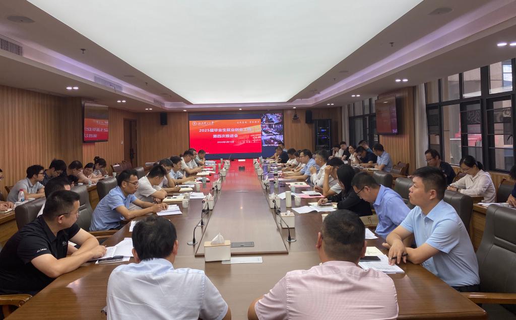 本网讯 5月16日下午,我校2025届毕业生就业创业工作第四次推进会在三江校区濂溪楼2号会议室召开。校党委常委、副校长董冰岩、熊志华,招生就业处、研究生院负责人,各学院本科生、研究生就业工作分管领导、就业辅导员,南昌校区就业工作分管领导、招生就业办主任等参加会议。会议由校招生就业处处长邓晓宇主持。
