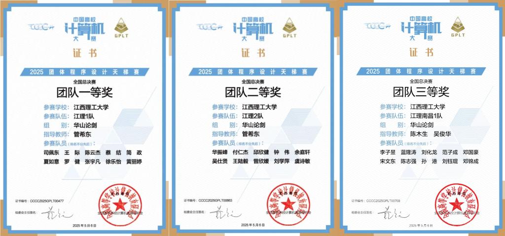 本网讯  近日,第十届“中国高校计算机大赛-团体程序设计天梯赛”获奖名单公布。我校共7支队伍参加了本次比赛,最终信息工程学院管希东老师指导的江理1队荣获全国团队一等奖,江理2队荣获全国团队二等奖,软件工程学院陈木生老师和吴俊华老师指导的江理南昌1队荣获全国团队三等奖。本次参赛获奖学生包括信息工程学院、软件学院和理学院的多个专业共计30人,体现了我校整体良好的编程氛围和水平。