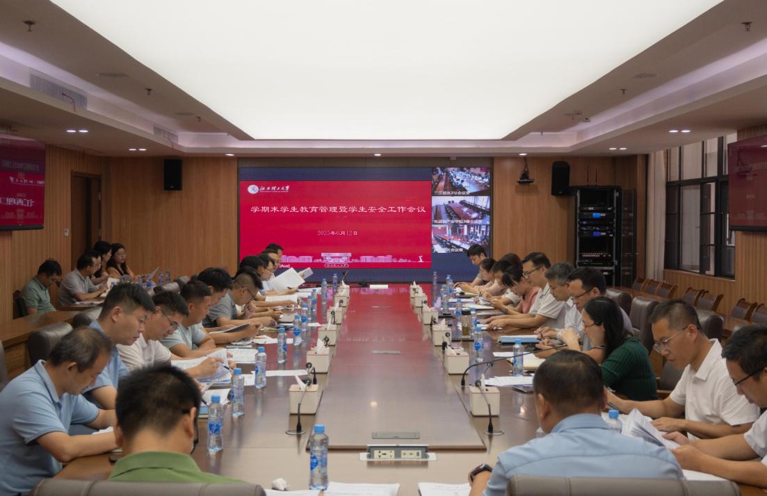本网讯  6月12日下午,我校在濂溪楼召开学生教育管理暨学生安全工作会议。校党委常委、副校长董冰岩、熊志华出席会议。相关职能部门负责人、各学院党委副书记参加会议。