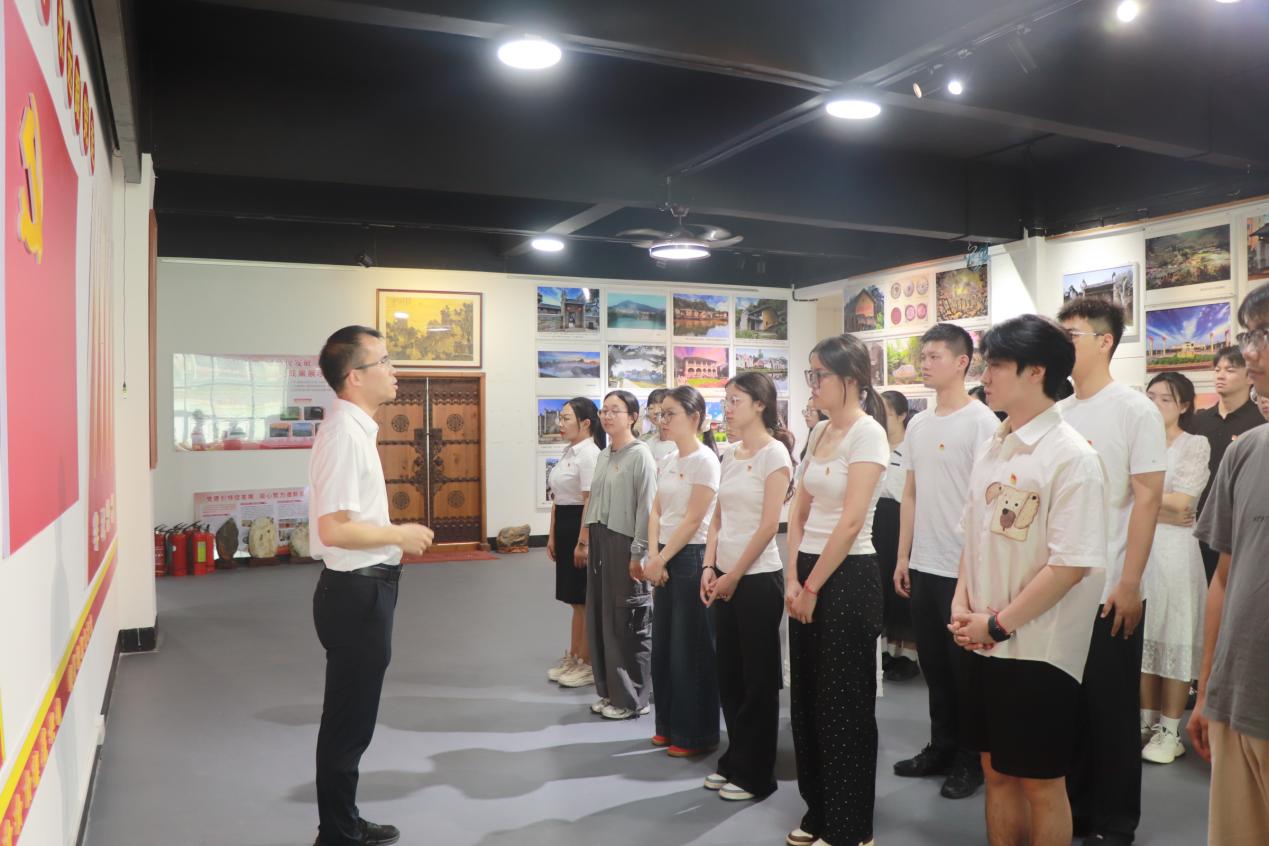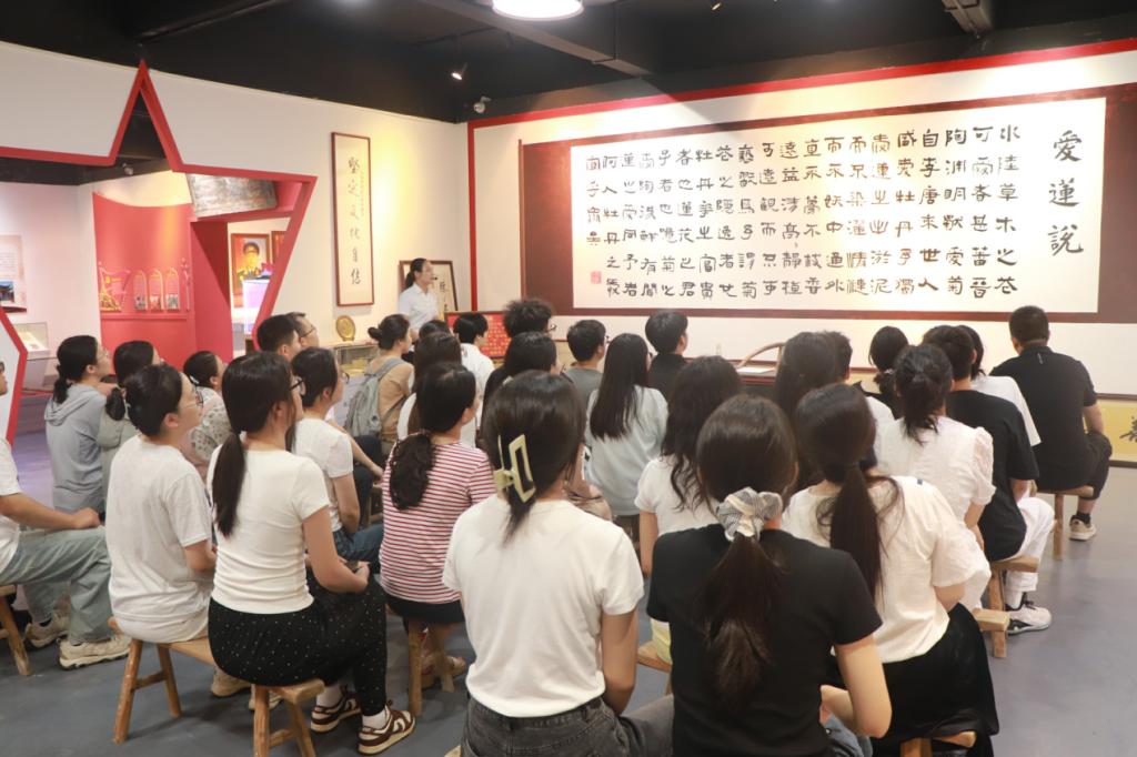 “苏区干部好作风,自带干粮去办公”的悠扬旋律回荡展厅,讲解员用清亮的嗓音唱起兴国山歌,将红色廉政故事融入传统曲调。一曲曲山歌,既是对萧华、陈奇涵等兴国籍革命先辈清廉自律精神的深情讴歌,也让大家在非遗文化魅力中感悟“日着草鞋干革命,夜打灯笼访贫农”的红色革命精神,让清正廉洁的种子在研究生党员心中生根发芽。