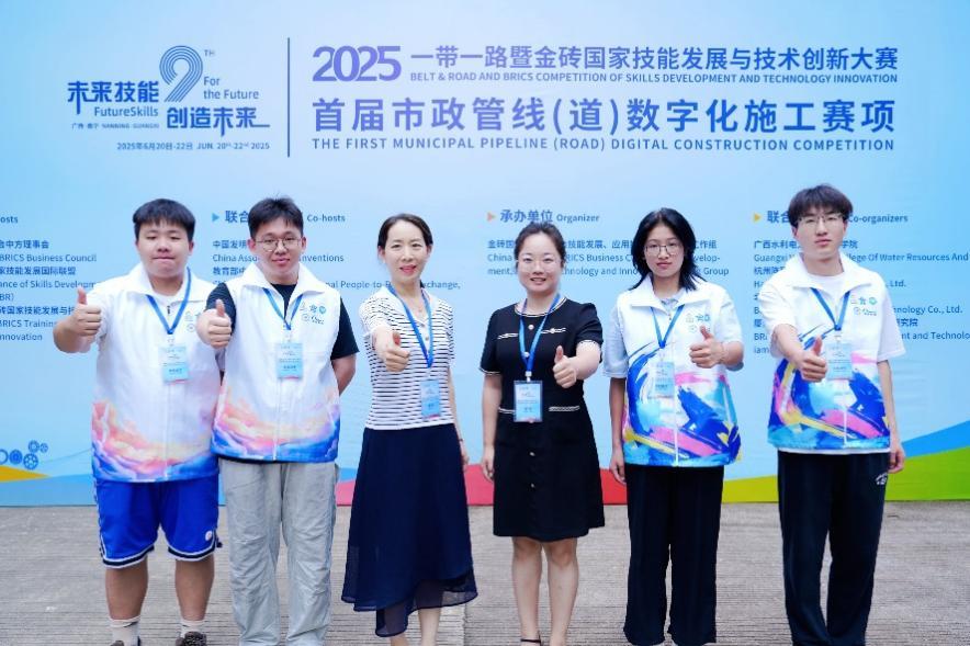本网讯 6月20日至22日,2025一带一路暨金砖国家技能发展与技术创新大赛之首届市政管线(道)数字化施工赛项全国决赛在广西水利电力职业技术学院里建校区举行,来自全国30个省、自治区、直辖市的248支参赛队伍同台竞技。我校土木与测绘工程学院市政工程系李新冬、张立楠指导的两个代表队分别荣获本科组一等奖、二等奖,学校获评“最佳组织奖”。