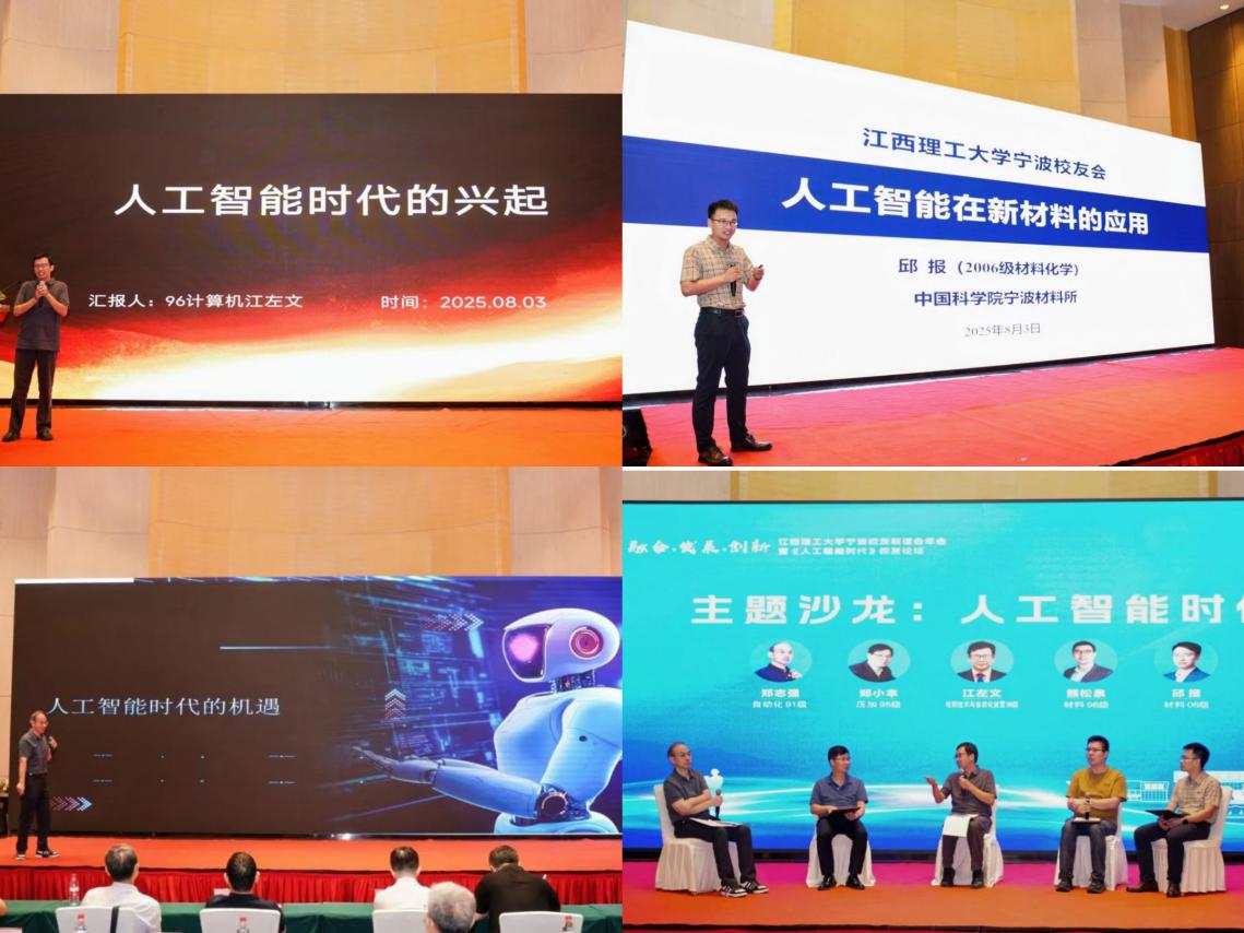 本网讯 8月3日,我校校友会宁波校友联谊会举办2025年会暨《人工智能时代》校友论坛。参会校友通过破冰行动、主题分享、沙龙思辨、文艺展演等多种形式,共叙理工校友情谊,共探技术革命浪潮,智论AI时代发展新篇。副校长汪航,原副校长、校友会副会长龚姚腾应邀出席相关活动。