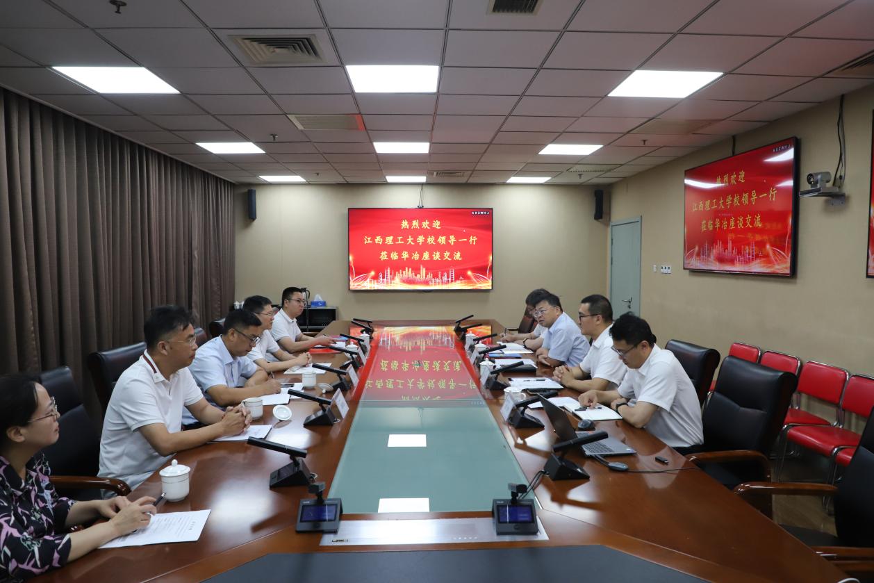 在中国有色金属建设股份有限公司,刘飞一行在公司党委副书记、工会主席马引代(我校工程造价管理1998届校友)的介绍下参观了公司展厅,了解了集团公司的发展历程、资质荣誉、企业优势、业务范围、资源开发、工程承包、全球布局、思想引领、社会责任等情况。座谈交流中,马引代对刘飞一行到来表示欢迎,并回顾了自己在母校的求学时光,表达了对母校和老师的感激之情。刘飞结合学校在稀土战略资源及关键战略材料相关专业的人才培养优势和科研成果,阐述了与中国有色金属建设股份有限公司合作的契合点和潜在合作领域。双方围绕人才招聘与输送、产学研合作、实习基地建设等方面进行了深入探讨。