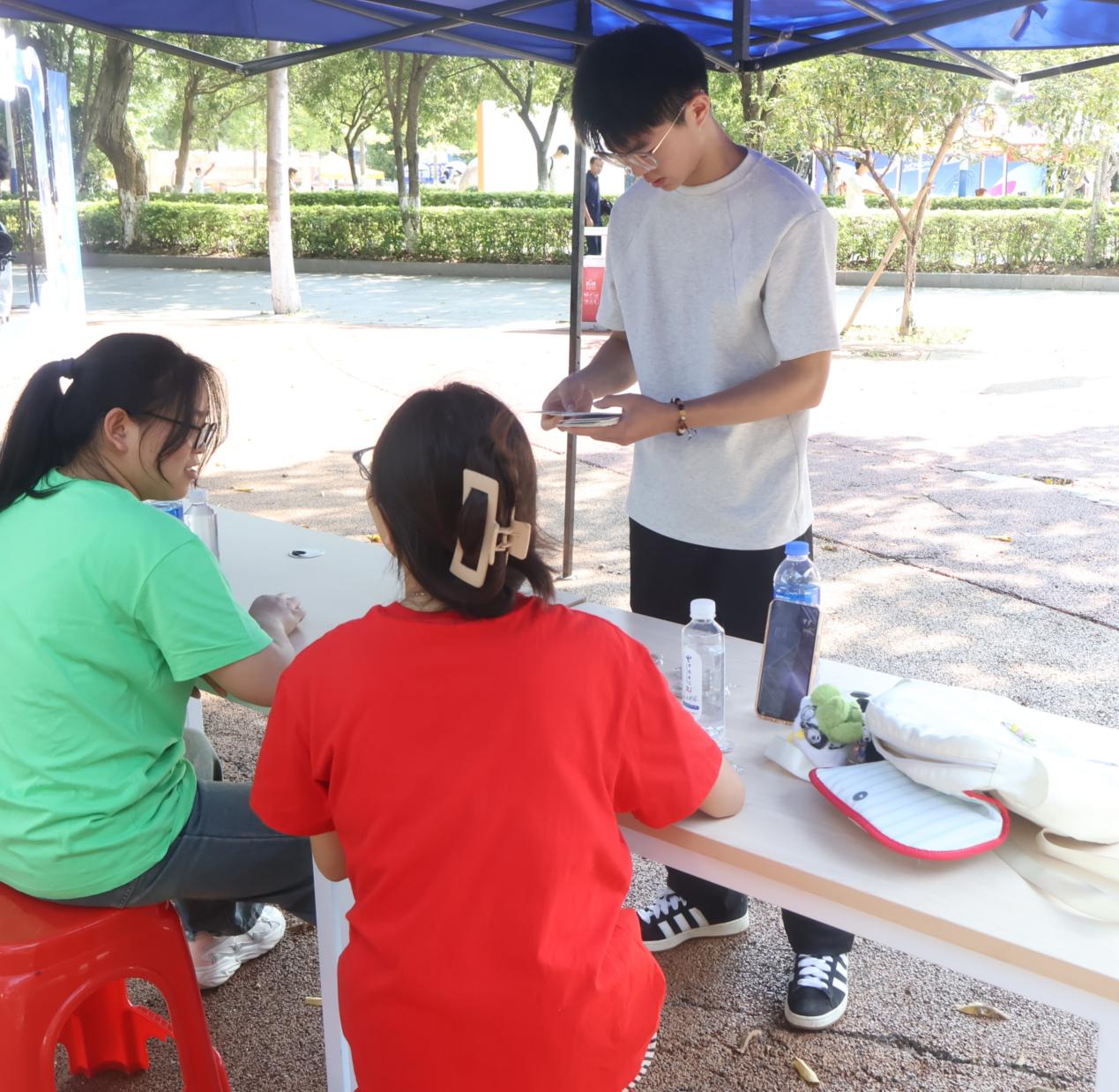 在八角塘“静谧时光”自然区域,学院设置了“黄金60秒应急物品排序挑战”小游戏。新生需在60秒内按照应急物品的重要性,对物品卡片进行排序。同时,安排志愿者在现场讲解野外、自然情境中的自救互救知识,将应急技能学习融入宁静优美的环境中,深化“人人讲安全、个个会应急”的理念。