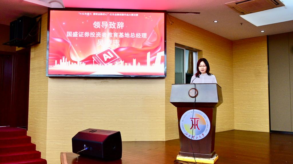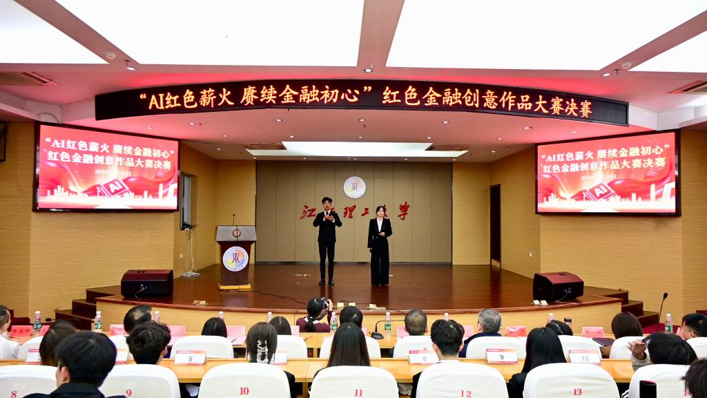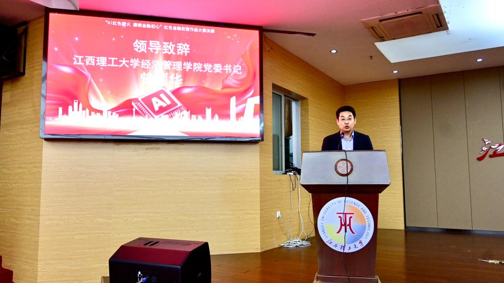 本网讯 10月25日,在中国证券监督管理委员会江西监管局、赣州市人民政府办公室指导下,国盛证券联合江西省证券期货业协会、安博站官网登录入口,_安博(中国)经济管理学院开展的“AI红色薪火·赓续金融初心”红色金融创意作品大赛决赛于红旗校区图书馆赵氟隆学术报告厅举行。赣州市政府办公室副主任朱雪林,国盛证券赣州分公司负责人卢毓明,国盛证券投资者教育基地总经理吴凌志等嘉宾出席决赛。经济管理学院党委书记曾国华、校学工部副部长孟冲、经济管理学院党委副书记吴媛及赣州市政府办、国盛证券、赣州市金融研究院的相关领导与教师代表共同参与活动。